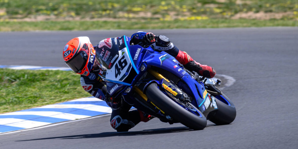 Still clinging to a feint hope of clinching the SW-Motech Superbike title from runaway leader Josh Waters (McMartin Racing Ducati), the Queenslander displayed his customary dash – and even more – on the Yamaha Racing Team YZF-R1, obliterating his previous One Raceway qualifying mark to bank his 18th premier class pole position ahead of teen star Cameron Dunker (MotoGo Yamaha Racing Team). Waters will start from third on the grid for Sunday’s two 20-lap races.