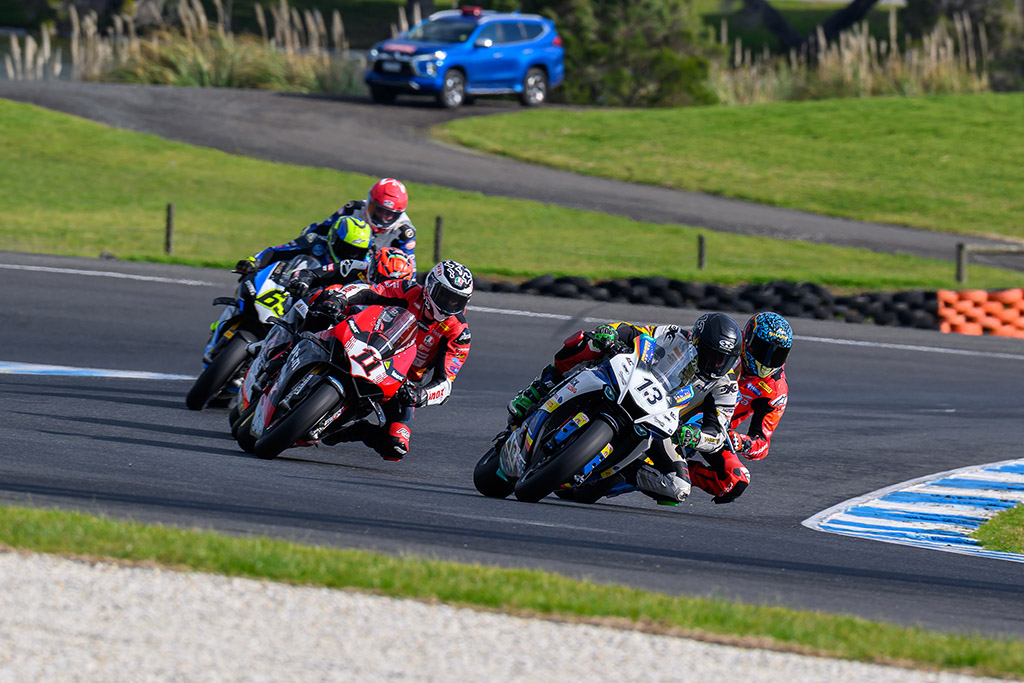 Fourth to seventh in the standings is split by just 17pts, with Glenn Allerton (Superbike Advocates Racing Ducati) leading the way from Broc Pearson (DesmoSport Ducati), Cameron Dunker (MotoGo Yamaha) and Jonathan Nahlous (Omega Racing Team Yamaha).